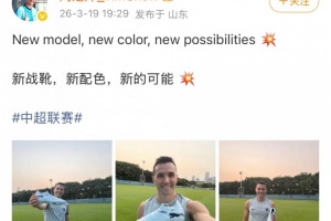 体育资讯3月19日讯 中超第3轮,深圳新鹏城将在客场对战青岛西海岸。今日深圳中场周定洋更新社媒,晒出与新球鞋的合影。