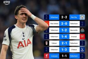 领先降级区1分!热刺近8轮英超比赛,仅对阵曼城和利物浦拿到分数