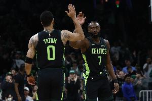杰伦·布朗31+8+8,末节10分稳住胜局,塔图姆19+12+7+3断1帽(真成乔丹皮蓬了),绿军有更强的三分,还在这个夜晚拥有了魔法。