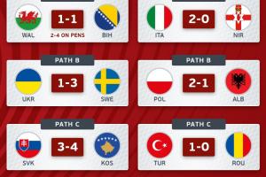 世预赛欧洲区附加赛半决赛综述: