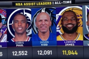 若要在本赛季超越基德,詹姆斯需打满剩余8场且场均17.4次助攻