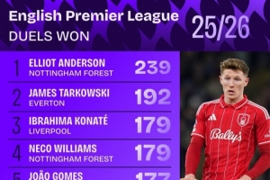 下一篇: 本赛季英超夺回球权次数榜:安德森243次遥遥领先,赖斯150次第4