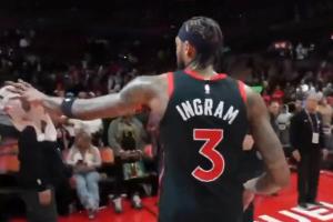 英格拉姆将自己的毛巾扔给美国女说唱歌手GloRilla