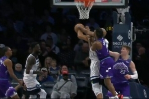 GIF-戈贝尔扣篮被科利尔凶狠犯规 要发作被兰德尔抱住&科利尔一级恶犯